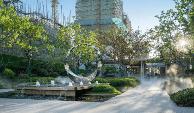 作为归家印象,圆月代表的“月满人团圆”的寓意能够为归者带来积极的心理暗示,耳畔泉水叮咛,聆听叠水声,冲淡一日的忙碌与疲惫,回归家庭的温馨气氛。
