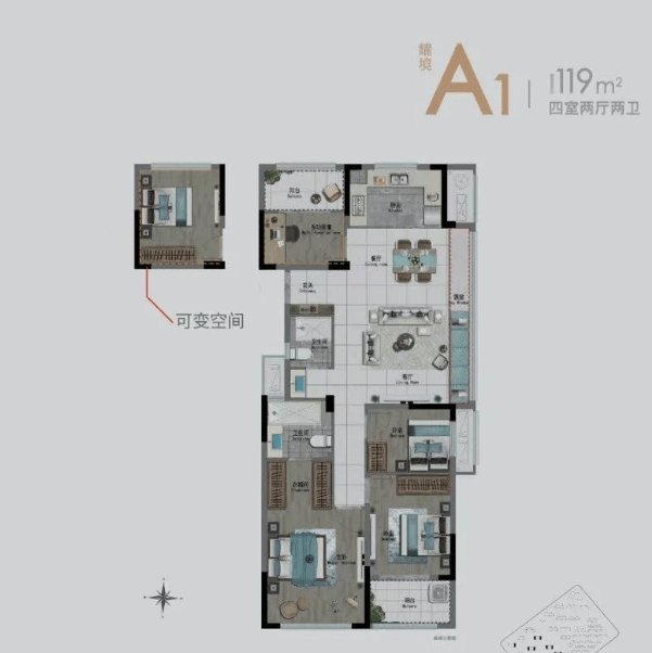 主力户型:建筑面积约 89-119㎡的三居、四居室,涵盖高层、洋房、排屋等多种业态。