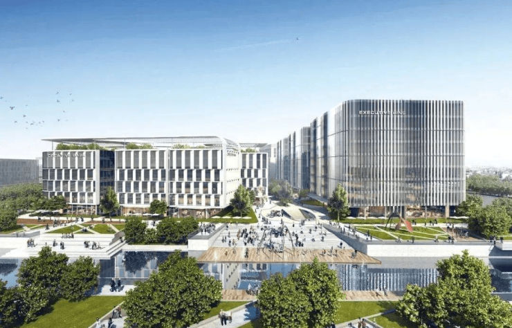 项目占地7万㎡,总建约35万㎡(地上建筑面积约17.5万㎡、地下建筑面积约17.5万㎡),国家绿色建筑标准,是区域高端办公项目。由23座独栋办公(面积总计约7万㎡)、3座甲级办公(面积总计约6万㎡)与1座商业(面积总计约4.3万㎡)、1座酒店(面积总计约2.3万㎡)组成。