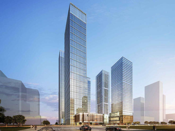 华润前海中心位于前海桂湾商务区,北至桂湾四路,东至梦海大道,西至听海大道,紧邻深圳、香港机场,项目占地面积6.18万平方米,总建筑面积50.3万平方米。 华润前海中心,定位为金融综合体,集商务工作、美学生活、社交休闲、人文艺术、个性潮流等跨界元素于一体,囊括华润前海大厦、万象城“创新版”——万象前海,悦玺(T4栋)以及酒店,同时还规划有前海的文化艺术中心。 华润前海中心项目商务写字楼部分——华润前海大厦总建筑面积约34万平方米,规划有三栋甲级写字楼(T1、T2、 T5),其中T5建筑面积约109,152㎡,建筑高度约249.4米,共53层,其中地下4层,地上包括裙楼3层为商业,6-53层为写字楼。