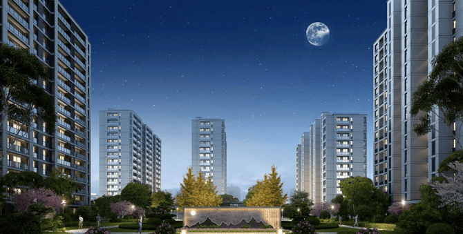 新中式建筑风格采用真石漆外立面搭配金属线条,融合传统坡屋顶与现代玻璃窗设计,高层与别墅分区布局,形成高低错落的天际线。别墅采用独门独院设计,部分户型配备下沉式庭院与露台,拓展空间利用率。