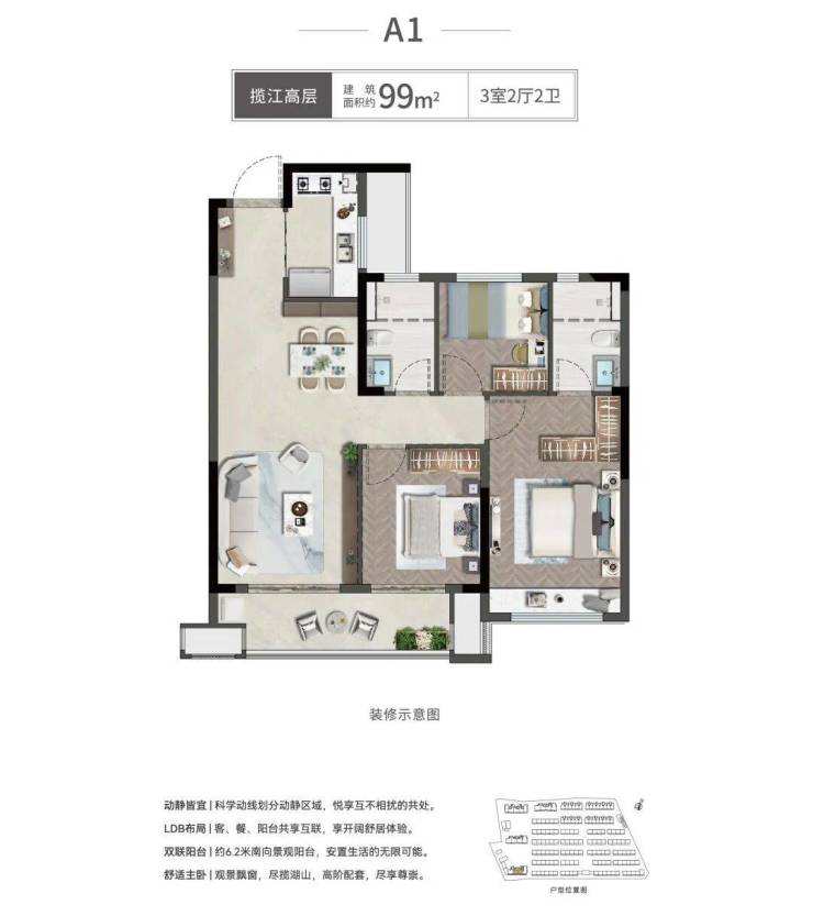 产品形态多元,规划揽江高层、滨水叠墅和国风联排三大产品,构建焕新城市人居理想的墅质住区,探索绍兴美好生活答案。