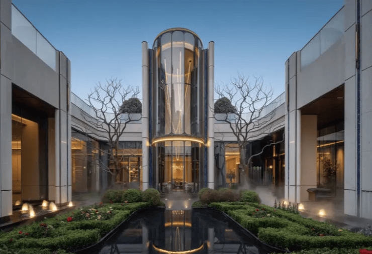 特色:铝板 + 真石漆外立面、2000㎡下沉式会所(泳池 / 健身 / 私宴)、风雨连廊、四玻两腔静音窗
