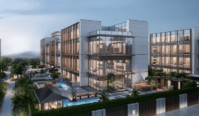 户型设计注重空间尺度,部分户型配备4.8米挑空会客厅、全景落地窗及私家庭院,部分复式户型实际使用面积可达550㎡,得房率高达182%。