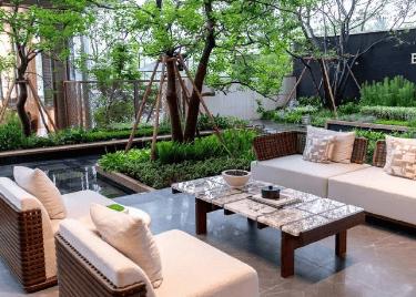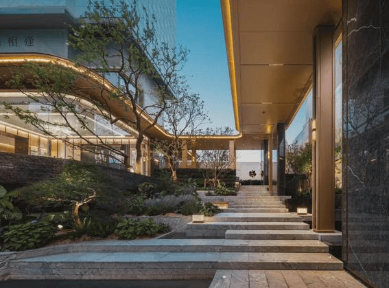 园林约4.6 万㎡,九大主题架空层(5000㎡+)、户外泳池、中央草坪、水系环绕、风雨连廊。