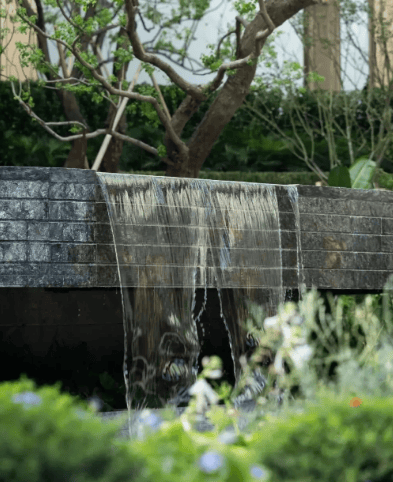 4.6 万㎡台地主题园林:“一环两轴多花园”、中央草坪、滨水步道、水系环绕、四季花开、步移景异、负氧离子高、3.2 米抬地仪式感