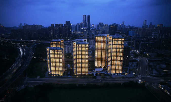 由GAD建筑设计院设计,采用围合式布局,建筑体块约45°扭转,大面积玻璃幕墙与金属线条结合,体现未来科技感。东区以错栋规划围合出四大山谷,营造私属谧境。