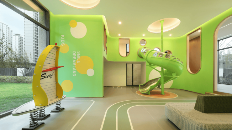 孩子们穿梭于沙坑、树屋