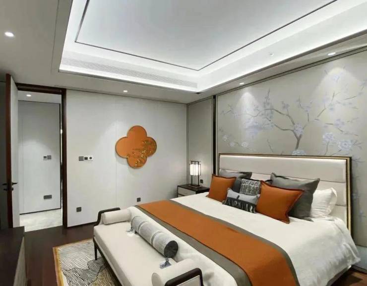 新中式内装承载着文化共鸣,用减法隐去传统中式的繁复沉重,用简洁的线条点缀中式设计元素。新中式元素形式多样,不再局限于大面积的深色原木、屏风、山水字画,大胆采用浅色现代家居、墙纸、石材装饰;配色简约克制、清新雅致,采用淡色为主深色点缀,实现中式与现代的巧妙融合。