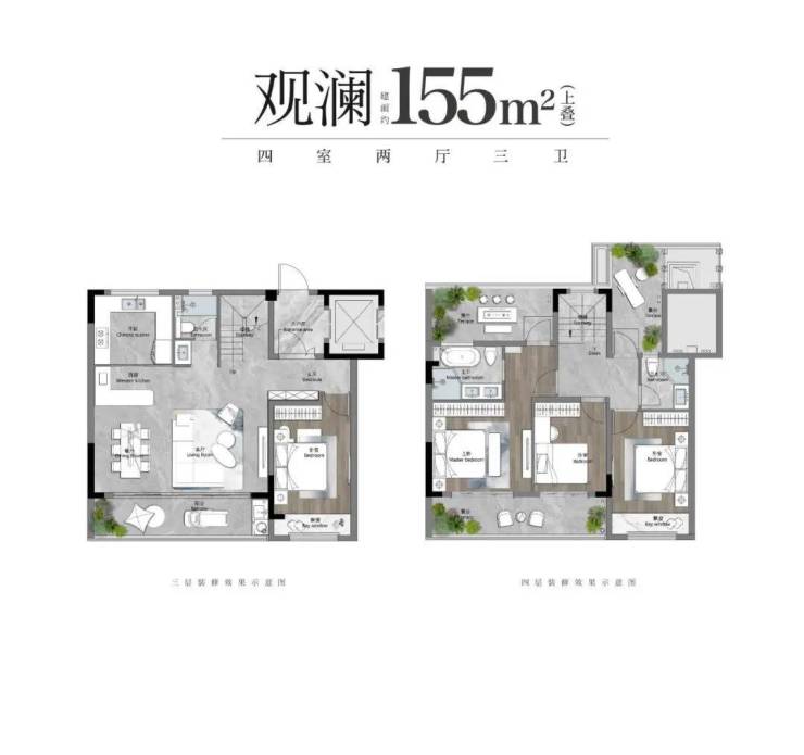 下叠一层拥有一间独立的南向房间,可作为老人房使用。所有卧室全部朝南,光线充沛,通风更好,住起来舒适性更高。