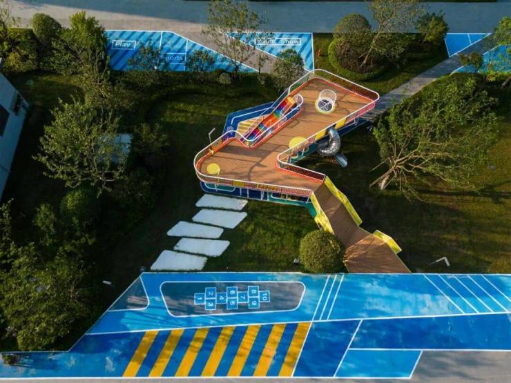 中央花园南面的6号楼首层架空设计,打造了儿童玩乐、运动健身、休闲交流等空间,为业主提供一个全龄段的邻里天地。