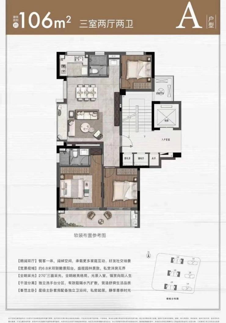 宁望府提供106-133㎡的三室、四室户型,满足不同家庭结构的需求。特别是133㎡的四室两厅两卫户型,通过四开间朝南、超级公区等创新设计,为居住者带来了前所未有的舒适体验。大尺度的南向面宽、双景观飘窗、巨幕阳台等细节处理,让“洋房”的居住品质得到了淋漓尽致的展现。无论是家庭待客、休闲娱乐还是日常起居,宁望府都能为业主提供理想的生活空间。