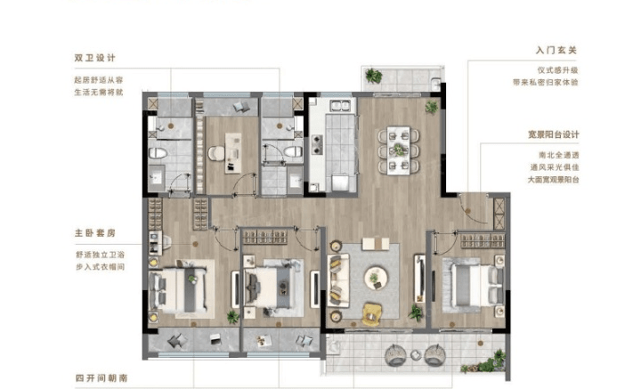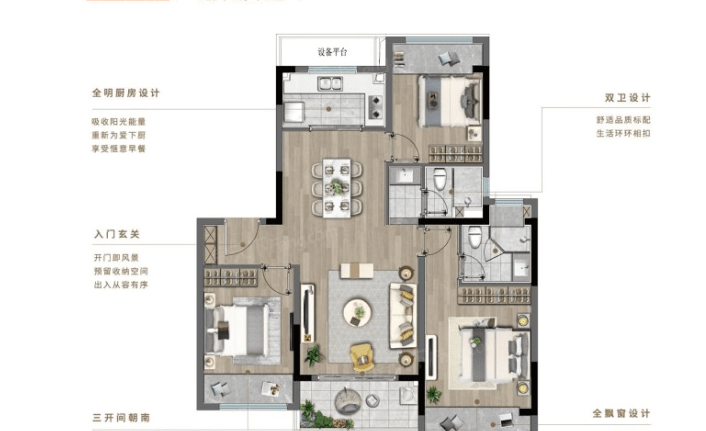 建面约105㎡、135㎡明星户型用高质精装和人性化空间配置,拓宽生活尺度,无限提升生活品质。