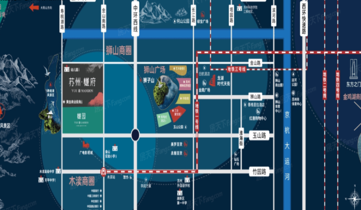 周边商业:木渎影视城、悠方、美罗、泉屋、绿宝广场、龙湖时代天街、金鹰
