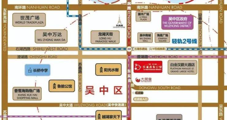 吴中龙湖天街(1100米直线距离)、吴中万达广场、海星商业广场、吴中商城、丽丰中心、永旺梦乐城、SM生活广场、大宁生活广场、大润发超市、华润万家