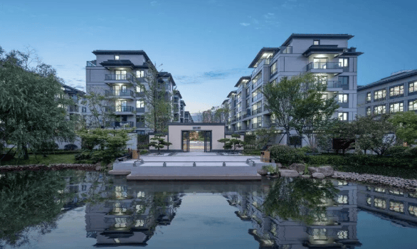 景观资源优越:项目占据半岛地利,三面环抱会稽湖,外揽大禹陵景区、香炉峰,内拥约 320 米滨水景观带,社区内新中式园林以 “曲径通幽、移步换景” 为理念,复刻江南园林的雅致意境。