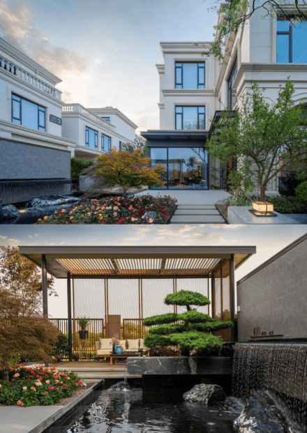 建筑风格:融合新古典、英式、法式和民国四国风情建筑,建筑细节处融入线脚、浮雕等元素,每栋院墅风格各异,极具韵味。