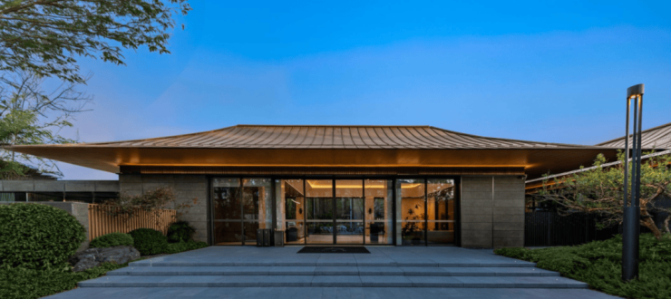 云山院的轮廓,是江南文脉在当代的悄然苏醒。设计师从江南传统黛瓦坡顶中提炼神韵,以现代建筑语言重构传统坡屋面的轻盈与舒展。