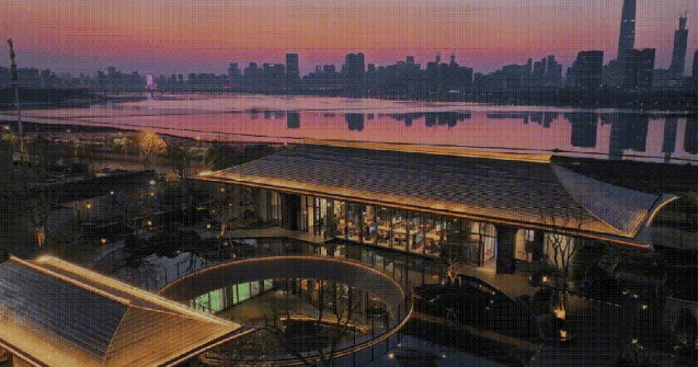 东方美学建筑:建筑立面采用铝板及石材,主体立面以水平线条为框架,飞檐塔冠造型取法华夏都城的建筑礼仪,大面积的 LOW-E 玻璃搭配金色铝板线条,打造出镜面感建筑立面,展现专属于沙湖的东方美学网易手机网。