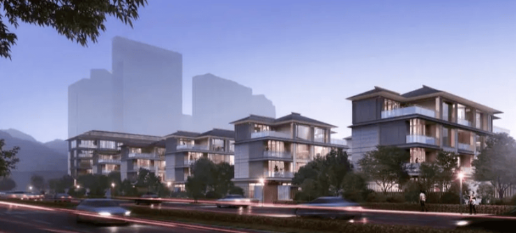 建筑设计:建筑立面以宋代美学为灵魂,精选印度宝蓝石材作为基底,配以大面积的玻璃幕墙、四面干挂浅灰色石材和深灰色铝板。星级酒店式车库入口采用仿铜铝方通、动感科技灯带等打造,叠排组团地下光厅借鉴劳斯莱斯星空顶设计理念。