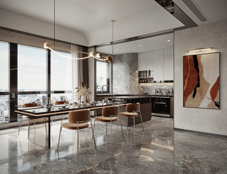 建筑设计:外立面采用大面积玻璃幕墙与干挂石材,融合现代美学与科技感,形成标志性城市天际线。配备 2.8 米挑高精装大堂,人脸识别系统,归家仪式感与安全性十足。
