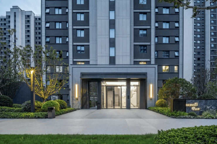 两侧种植了层次分明的景观组团,标识明显的楼栋Logo相当大气,也将归家仪式感延续到了回家的最后一刻。