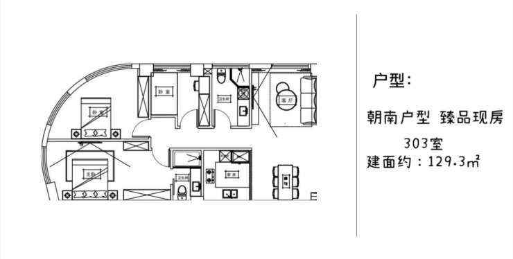 301室143.82 朝南 东边套,客厅,房间全明亮