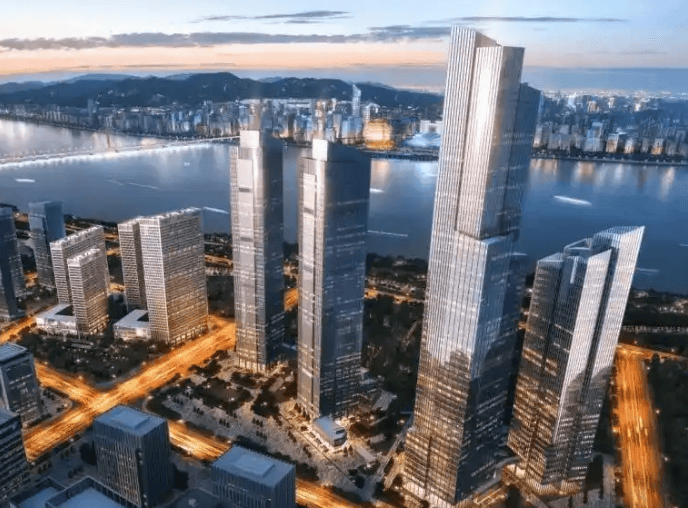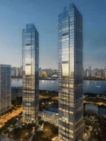 奥体 240 米双子塔地标 + 一线江景:奥体核心地标,240 米 H 型双子塔,辨识度拉满;直线 450 米钱塘江,270° 环幕江景 + 地标全景
