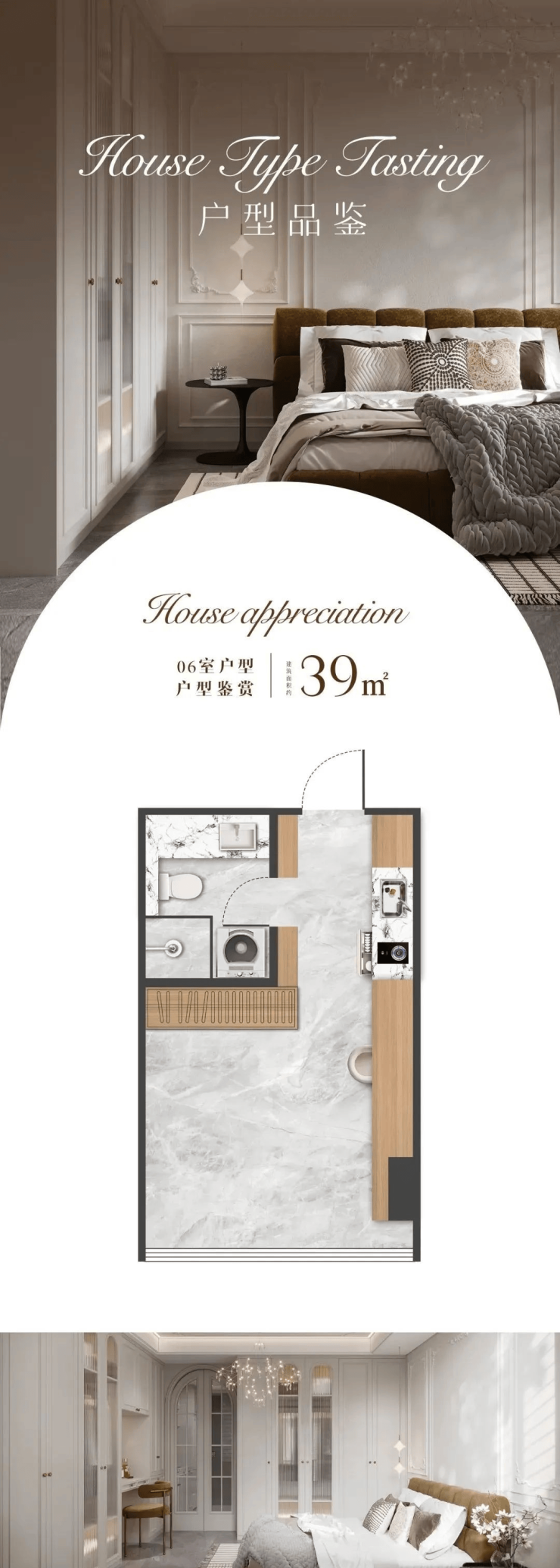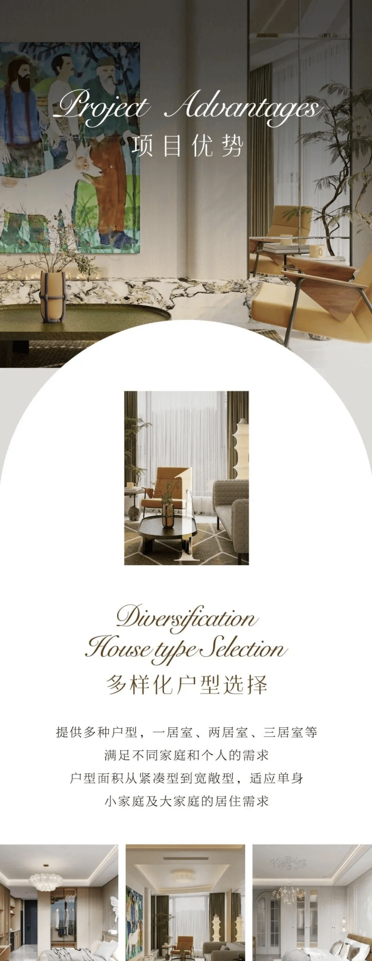 户型信息:有一房、两房、三房精奢户型,建面约 39-113㎡