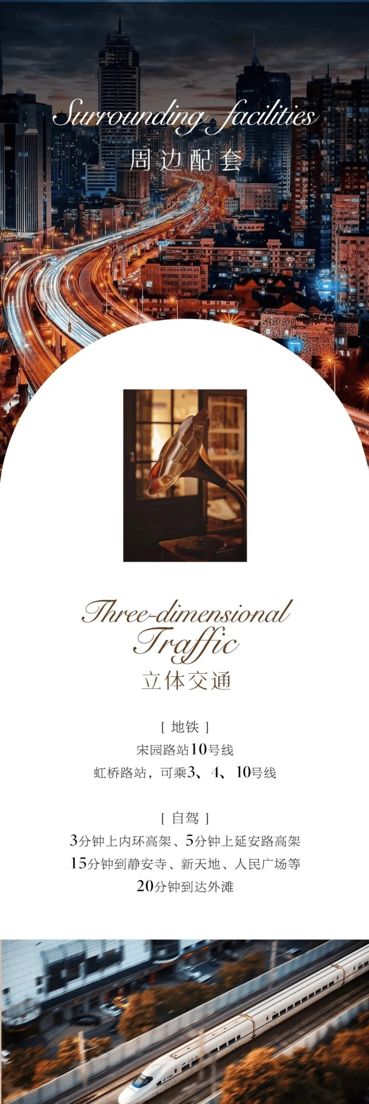 交通配套:临近宋园路站(10 号线)、虹桥路站(3、4、10 号线),4 轨交汇