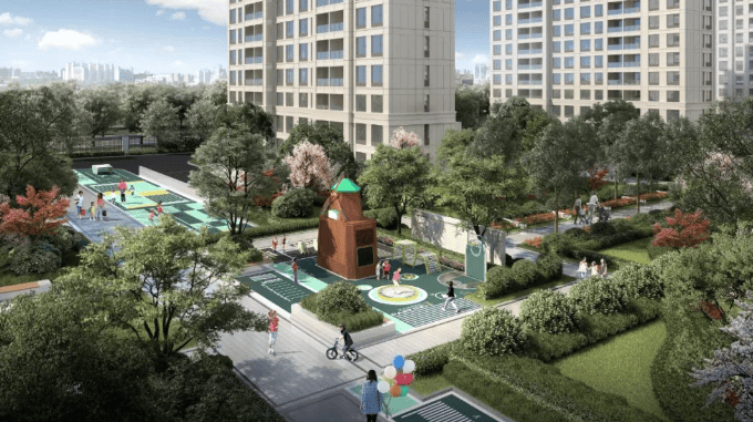 规划指标:总占地约 4.12 万㎡,总建面约 14.35 万㎡;10 栋 17–20 层小高层,共 1026 套;容积率 2.3,绿化率 35%,车位配比 1:1.16,人车分流;物业费 3.8 元 /㎡・月;2 梯 4 户,精装交付(含中央空调、新风),现代简约立面。
