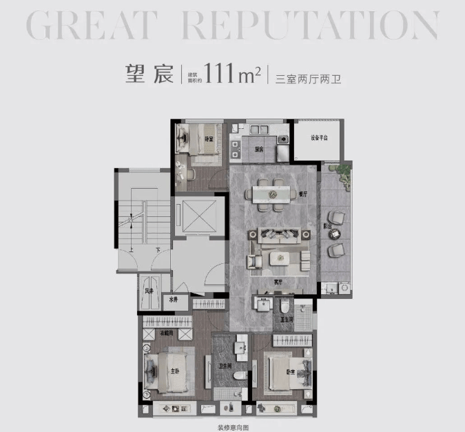 111平,三房两厅两卫