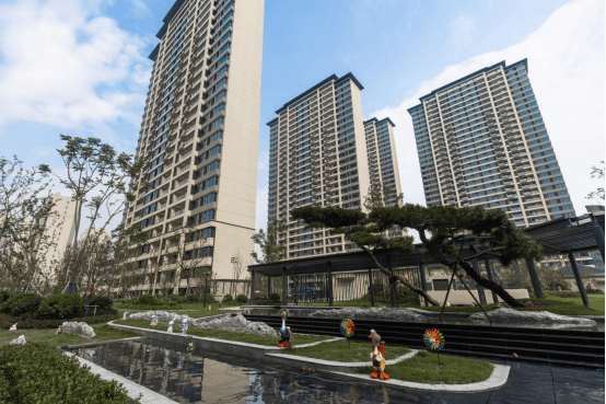 刚进入小区,映入眼帘的就是社区入户门口清澈见底的景观水池、错落有致的花木植被、绿意盎然的阳光草坪等沿着景观中轴一路铺陈,景观与空间交织的层次感,率先给我们带来一波强烈的视觉冲击感。