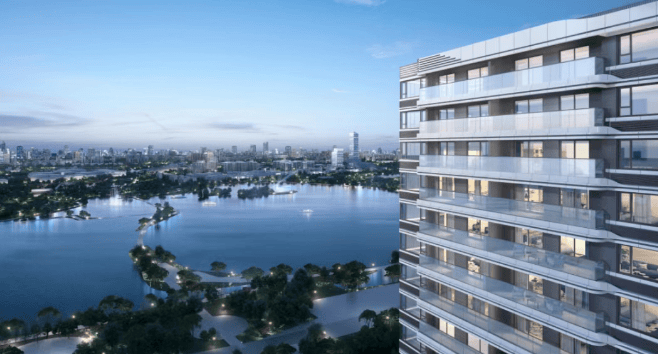 产品设计:采用大面积玻璃立面设计,营造轻盈通透的视觉效果;户型方正,南北通透,部分户型配备大阳台或全景落地窗,可俯瞰湖景或社区园林。