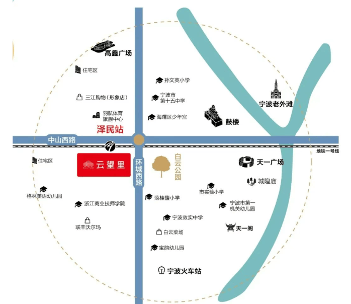 教育:直线 1 公里范围内有效实中学、广济中心小学、宁波实验学校、宁波市第十五中学等优质教育资源,满足从小学到中学的教育需求。