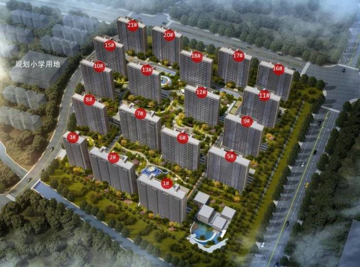 小区规划:占地约 6.82 万㎡,建筑面积约 12.47 万㎡,容积率 2.0,绿化率 37%。规划 17-18 栋 17-18 层小高层,共 1251 户,车位 1671 个,车位比约 1:1.34。