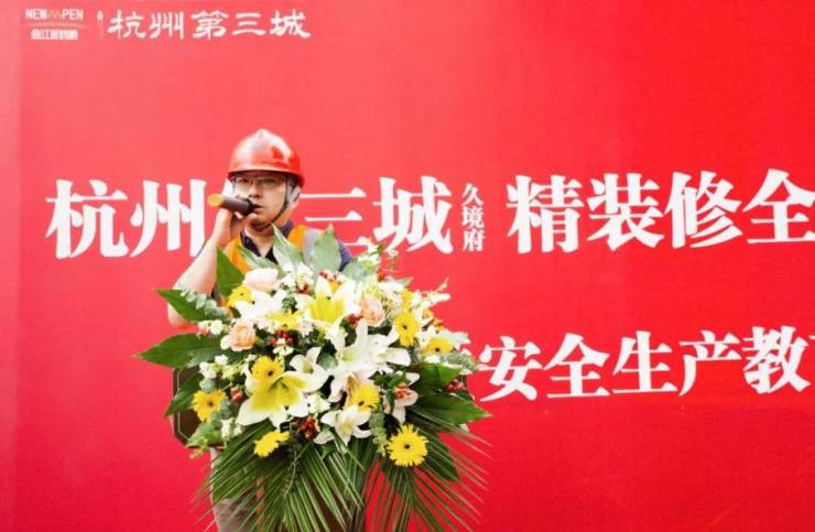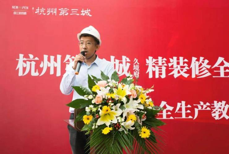 活动最后,杭州公司董事长刘润登台致辞,宣布杭州第三城(久境府)精装修全面启动仪式暨安全生产教育活动正式启动。他表示,公司将会严管工程质量与工程安全,恪守承诺,坚守责任与使命,不惧怕困难,不断夯实内功,聚焦提升服务力和产品力,确保项目按时交付。