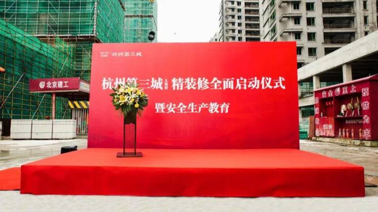 曲江新鸥鹏杭州第三城(久境府)精装修全面启动仪式暨安全生产教育活动盛大举行。临平经济开发区相关领导、曲江新鸥鹏杭州公司董事长刘润、曲江新鸥鹏杭州公司副总王卫存、苏州金螳螂建筑装饰有限公司副总经理王琮现、区域经理于翔等出席了此次活动,杭州第三城(久境府)精装修施工单位到场共同见证这一盛大时刻。