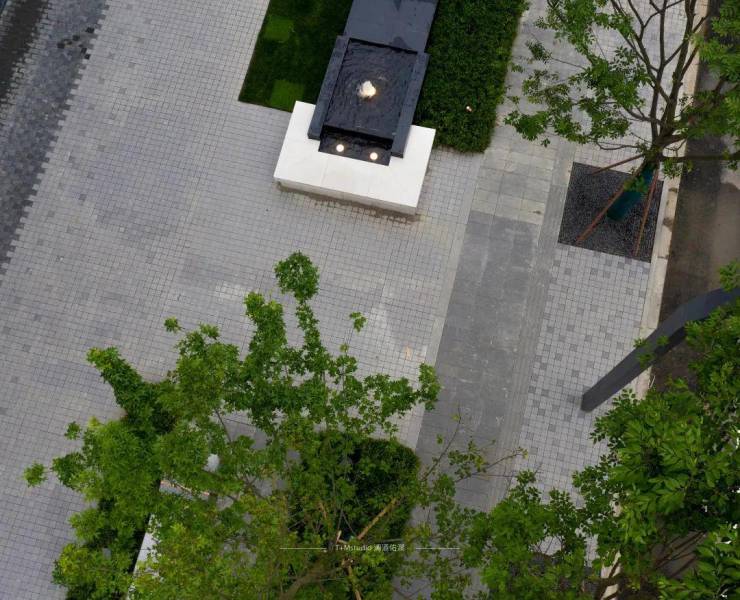 ▲入口宽厚的绿荫是奇妙巧合,为设计提供了新的可能。我们保留了场地中现有的每棵行道树,以此营造更加隐奢的空间感。