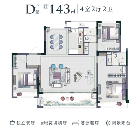 宽境王者范——建面约143㎡D户型,四房两厅两卫
