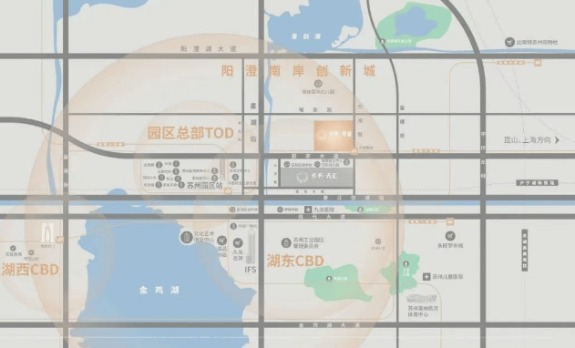 项目位于苏州工业园区阳澄南岸创新城,紧邻金鸡湖CBD,距星湖街约600米,地铁3号线方湾街站旁,5轨交汇(3号线、1号线、5号线、8号线在建、14号线规划),1站可达园区站“十字型”城际铁路枢纽,5站直达苏州中心,8号线3站直达久光商圈,约3公里范围内覆盖金鸡湖CBD核心商圈,生活便捷度高。
