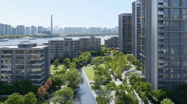 大型景观:采用引江入园、以水带路的手法,打造约 6 万平方米景观秘境和约 3000㎡水景,社区内部形成高区看江、低区看园的资源分布,园林内种植有桂花、香樟、紫薇、樱花等绿植,搭配山西黑和意大利进口的蓝金砂大理石,品质非凡。