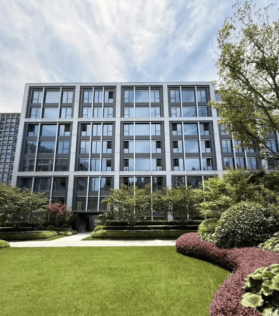 独特立面:采用上海独一无二的 “类幕墙设计” 立面,平推窗与立柱一体化设计,搭配超大尺度的落地玻璃窗和 “开放式铝板设计”,以大面积玻璃及开放式铝板外立面呈现现代简约风格,香槟金或灰色铝材拼接玻璃,亮银色框架勾勒建筑檐口,深色金属勾边,纵横 “十字” 型,赋新建筑轻盈与时尚。