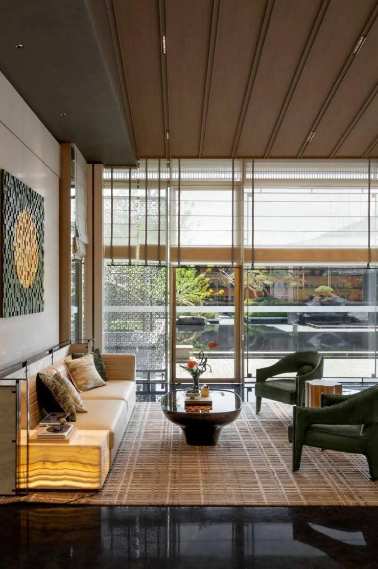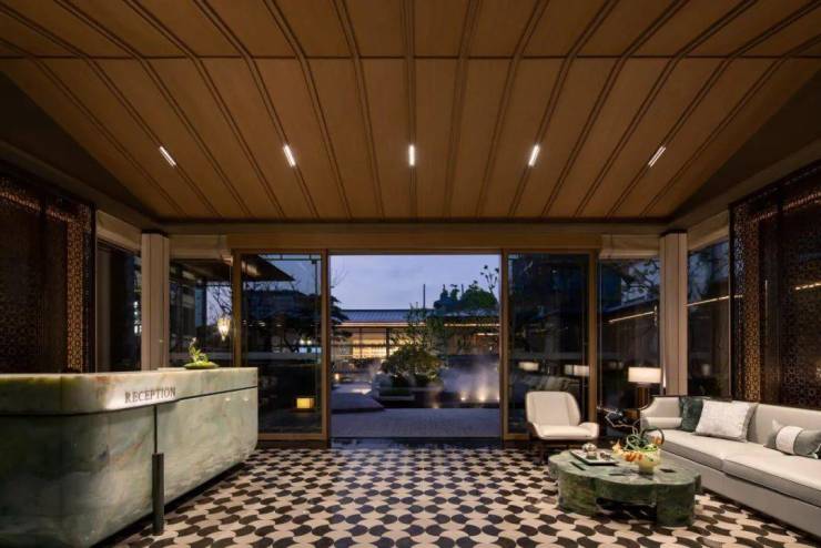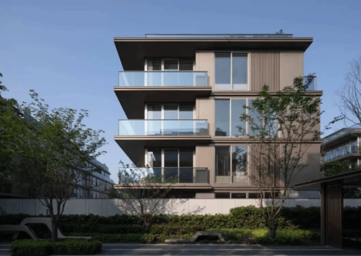 建筑规划:项目容积率仅 1.1,是典型的低密住区 。总共规划 286 户,营造出静谧、舒适的居住氛围,避免了高密度社区的嘈杂与拥挤。建筑类型主打联排别墅,建筑风格融合宋韵美学,以现代建筑语言对传统宋式元素进行创新转译。例如,借鉴宋代建筑的 “轻灵屋檐”,简化戗角飞檐,用利落线条勾勒出独特轮廓;打造 “金镶玉” 立面,以玉润玻璃搭配香槟色金属线条,尽显高贵典雅,呈现现代形制的东方韵律。