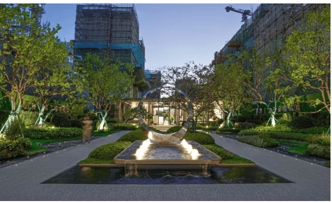 作为归家印象,圆月代表的“月满人团圆”的寓意能够为归者带来积极的心理暗示,耳畔泉水叮咛,聆听叠水声,冲淡一日的忙碌与疲惫,回归家庭的温馨气氛。