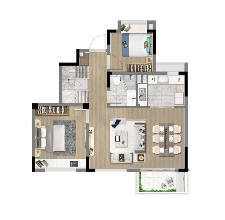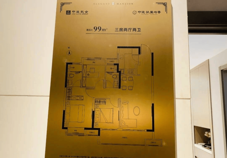 【主力户型】:三房二厅二卫(建面99㎡)