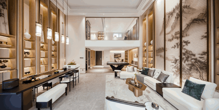 此外,锦粼鸣庐湖畔联墅更以“3+2”五重立体格局,让渡更多私崇给墅享生活,悉心呵护全家居住理想。地下一层,空间轩敞明亮,扩容家的美好;地上三层空间,既可共享欢聚,亦可独立私密;顶楼朗阔天地,风光一览无余,拓展无限意趣。