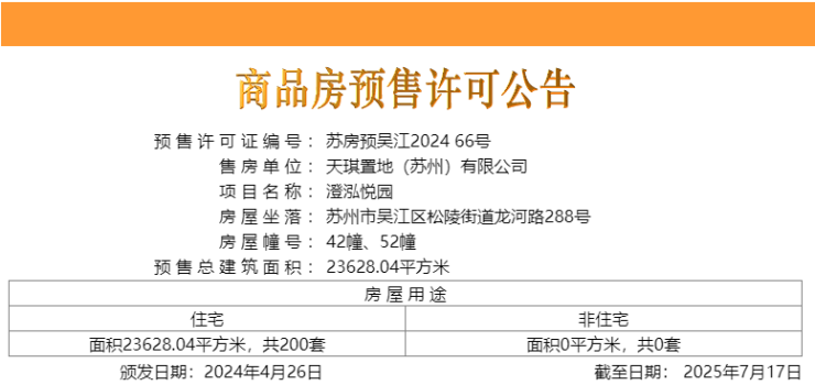 开发商:天琪置地(苏州)有限公司(深圳市政51%+吴江城投30%+天健19%)