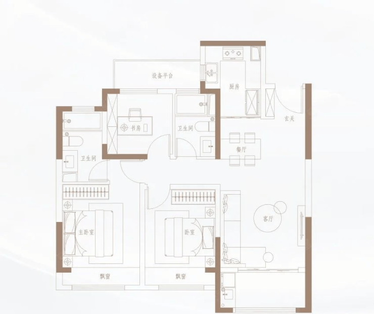 103㎡/113㎡户型较为传统,格局基本相同,3室2厅2卫,只是在尺度上有所区别。