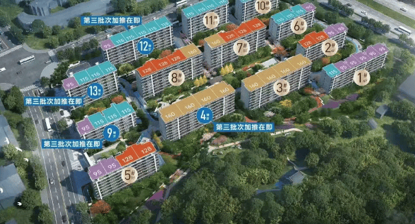 小区规划:项目规划有 13 幢 6-8 层住宅单体,采用人车分流设计,电梯直接入户。小区内设置了多个功能区,4# 和 8# 楼中间是老年活动区,8# 和 12# 楼中间是青年活动区,7# 和 11# 楼中间是儿童活动区,还围绕 2#、6#、7#、8# 楼设计了环形跑道。
